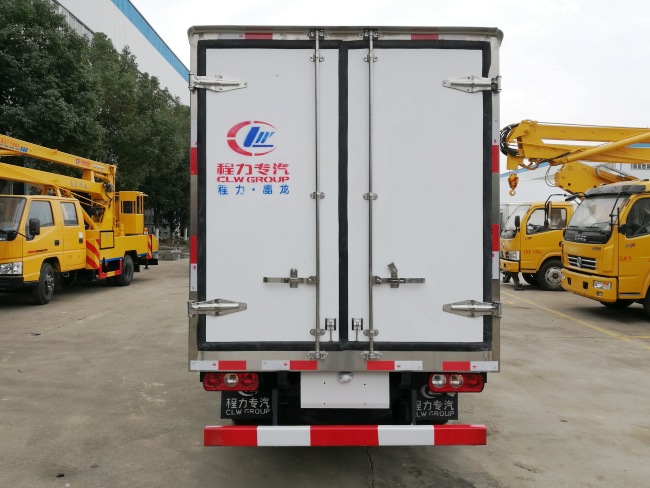我公司《晶龍工藝》技術,采用1200噸液壓加熱固化設備一體成型生產線制造,廂體保溫技術達到國家A級標準。1、全密封樹脂膠粘連聚氨酯發泡板高壓加熱固化而成,廂板厚度為8cm;2、廂板內外面料為2.5mm厚新款玻璃鋼;3、粘連輔料為玻璃纖維絲布;4、板塊結構聚氨酯發泡保溫材料;5、全密封樹脂膠粘連;6、預埋實木廂體加固;7、廂體框架為防銹處理槽鋼支撐;8、鋁合金包邊/不銹鋼包角;9、廂體內部加裝LED照明燈;10、廂體加裝LED示寬燈;11、3.5米廂體以上加裝LED邊燈;12、廂體后門框為不銹鋼制造及不銹鋼鉸鏈(俗稱:不銹鋼合頁);13、加厚不銹鋼鎖件;14、后門加裝防撞膠塊;15、采用三元乙丙橡膠密封條;16、3M反光膠板。