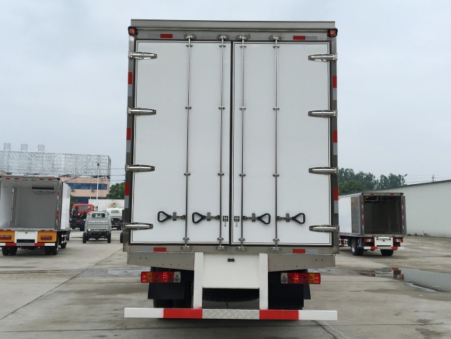 我公司《晶龍工藝》技術,采用1200噸液壓加熱固化設備一體成型生產線制造,廂體保溫技術達到國家A級標準。1、全密封樹脂膠粘連聚氨酯發泡板高壓加熱固化而成,廂板厚度為8cm;2、廂板內外面料為2.5mm厚新款玻璃鋼;3、粘連輔料為玻璃纖維絲布;4、板塊結構聚氨酯發泡保溫材料;5、全密封樹脂膠粘連;6、預埋實木廂體加固;7、廂體框架為防銹處理槽鋼支撐;8、鋁合金包邊/不銹鋼包角;9、廂體內部加裝LED照明燈;10、廂體加裝LED示寬燈;11、3.5米廂體以上加裝LED邊燈;12、廂體后門框為不銹鋼制造及不銹鋼鉸鏈(俗稱:不銹鋼合頁);13、加厚不銹鋼鎖件;14、后門加裝防撞膠塊;15、采用三元乙丙橡膠密封條;16、3M反光膠板。