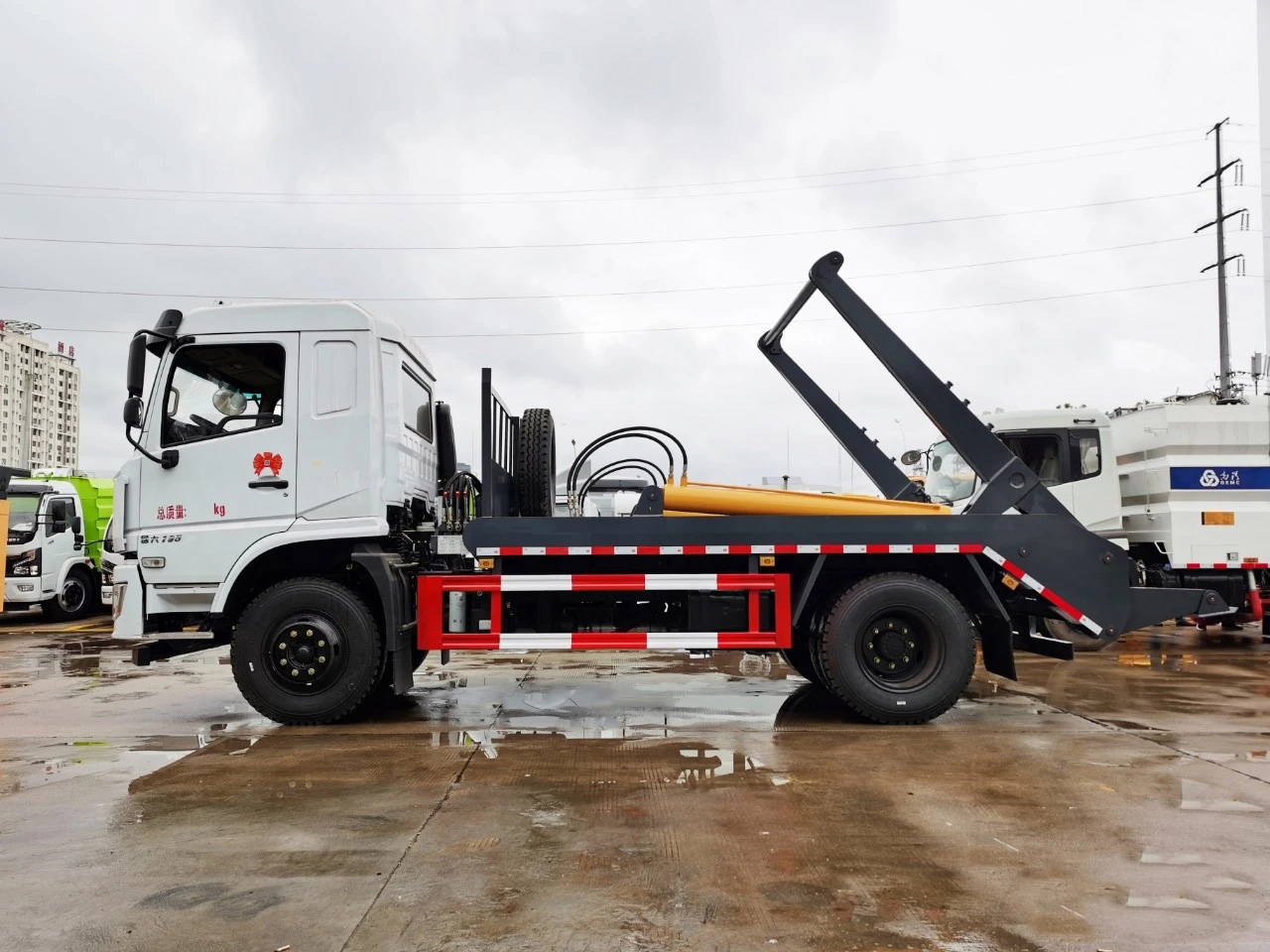 • 擺臂垃圾車:加裝統一配套液壓舉升總成,通過左右兩臂裝運垃圾斗,可一車多斗,帶自卸功能,達到安全穩定,性能可靠。垃圾斗廂體分為按擺臂式和地坑地面兩用式配置不同形式的垃圾斗。可加裝密封蓋,防止泄露飛揚污染,以適應不同環境使用要求,可由生產廠家為用戶提供垃圾斗圖紙,協助用戶設計垃圾。