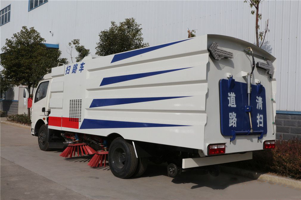 1、采用吸掃結合的方式收集垃圾,濕式除塵、電液控制,液壓傾翻卸料的作業方式對路面進行清掃作業。