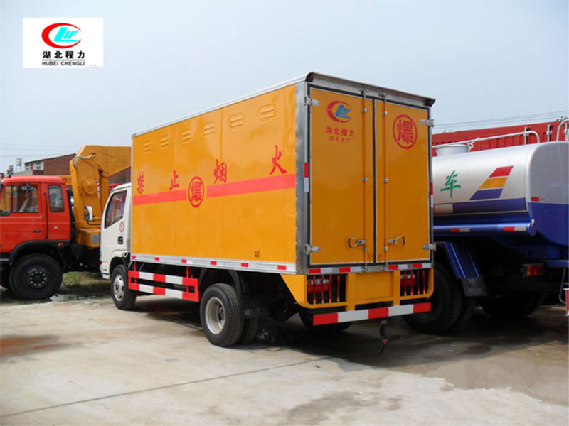 4mm厚的鋼板制作,廂體底部鋪有防靜電膠皮,廂體兩側安裝固定貨物卡槽或臥環,廂體頂部中間位置安裝煙霧報警器,后門及側門安裝防盜報警器,廂體前面鋪靜電膠皮,帶側門,后雙門,廂體顏色根據客戶要求變換,帶兩只滅火器和排氣管防火罩、三角危險品頂燈,其余標配。