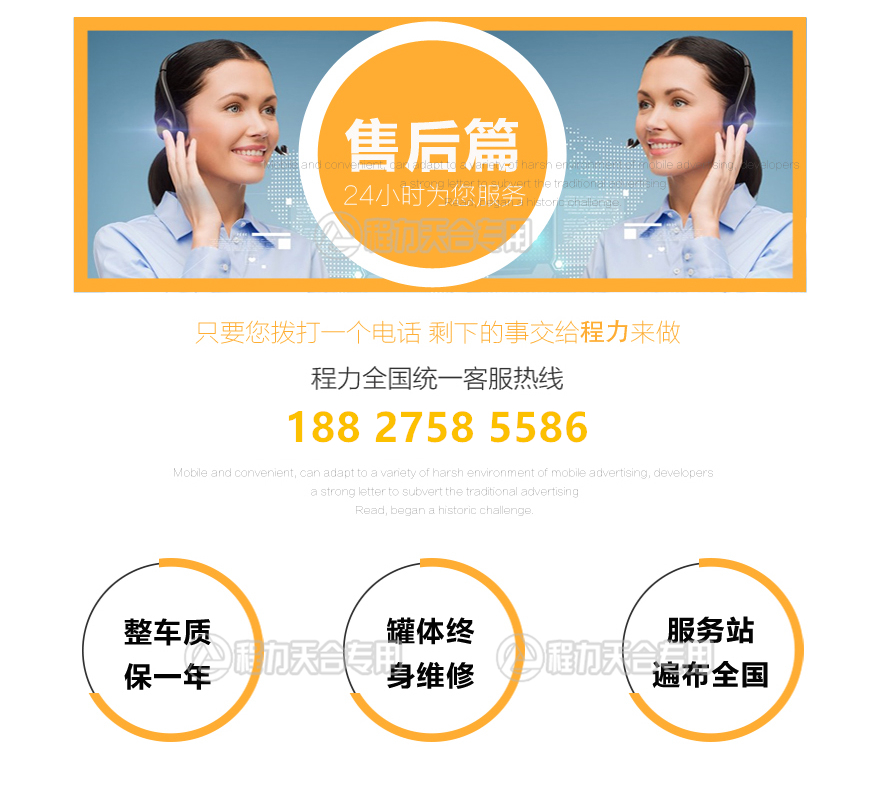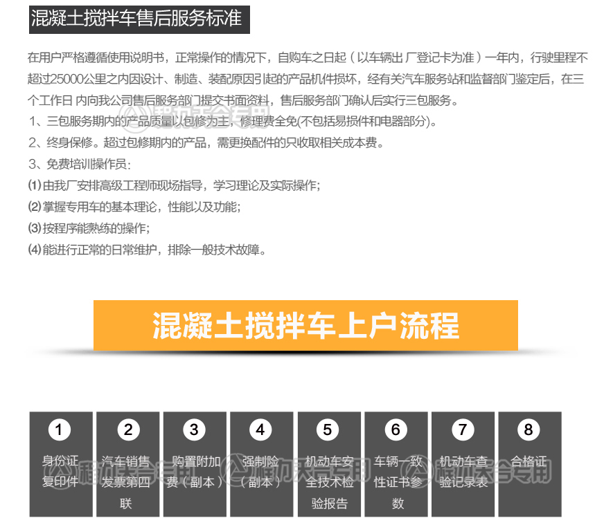 售后服務: 底盤和上裝三包售后服務一年或三萬公里