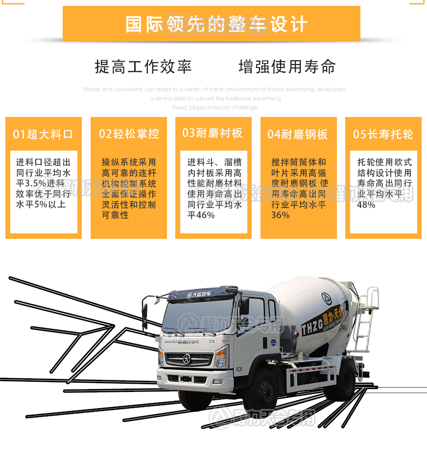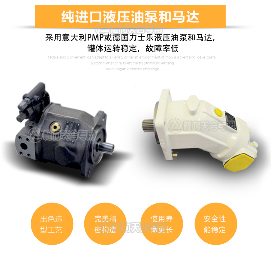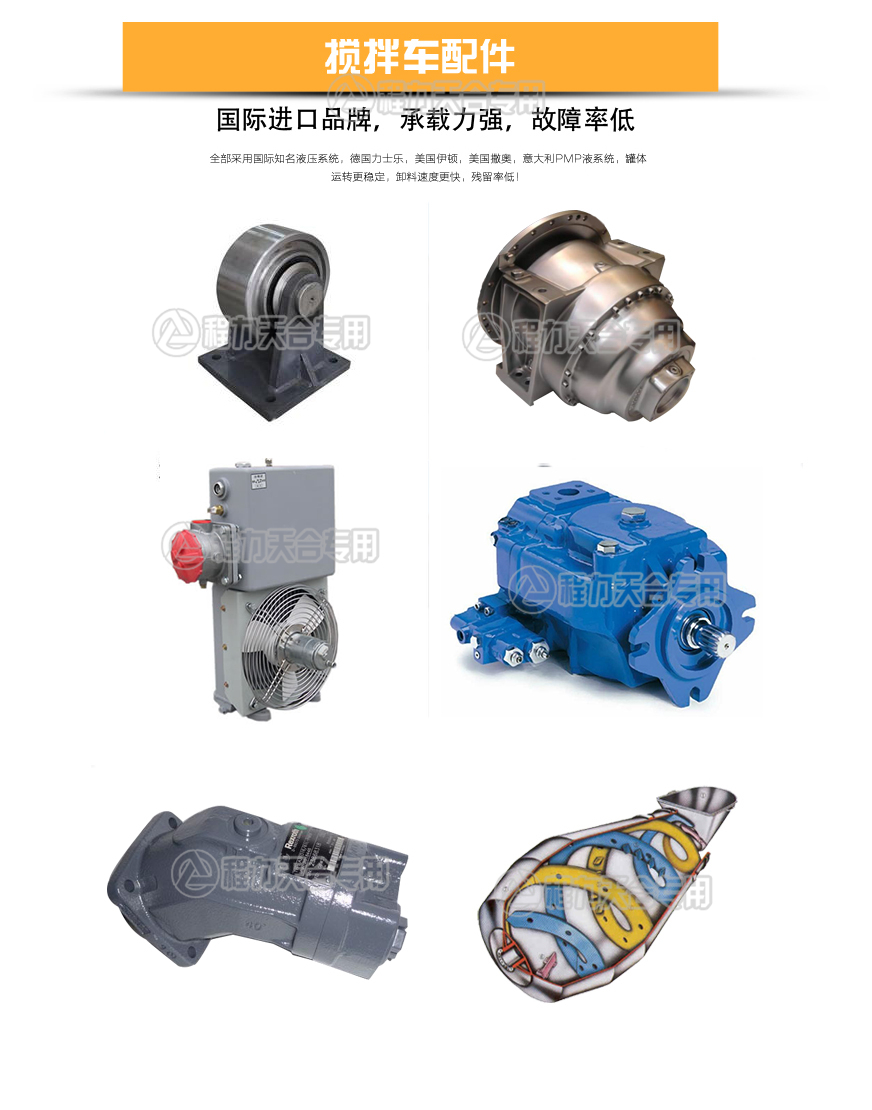 攪拌車液壓系統: 全部采用國際知名液壓系統,罐體運轉更穩定,卸料速度更快,殘留率低!