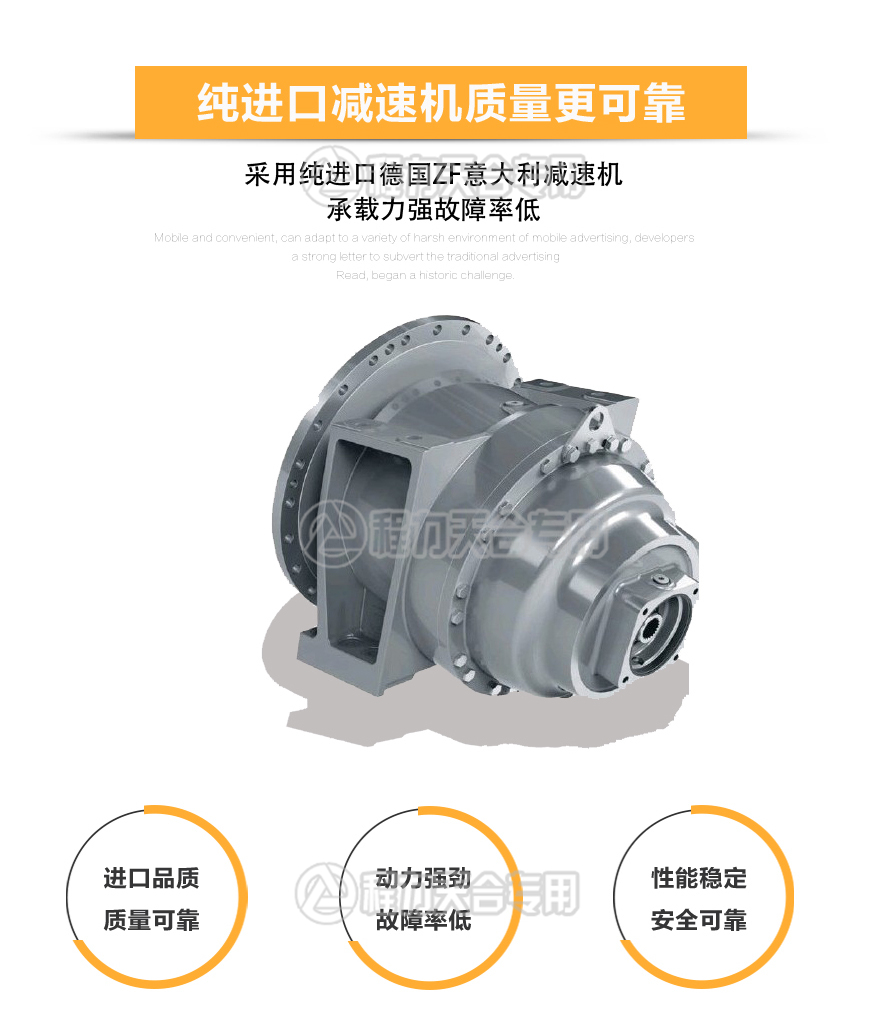 減速機 德國ZF 減速機/ 意大利邦飛利 PMP(純進口) 液壓系統: 德國力士樂、/美國伊頓/美國薩奧/意大利PMP(純進口)