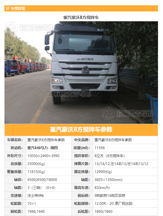 中型混凝土攪拌車,均可采用不同底盤(例如:東風,重汽,陜汽,福田...等),上裝罐體容量 8-14立方。