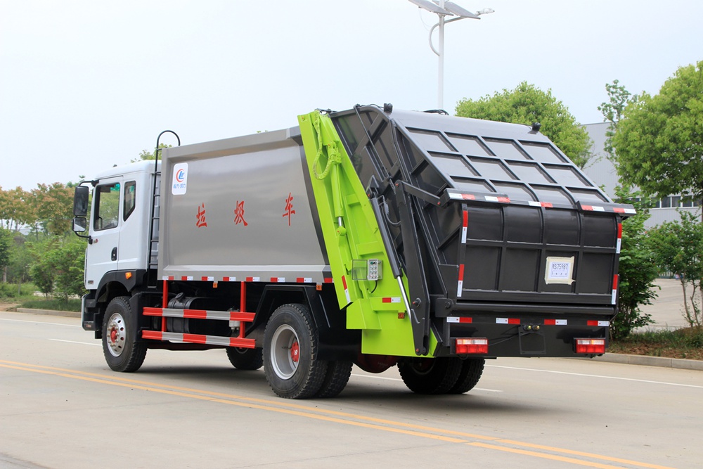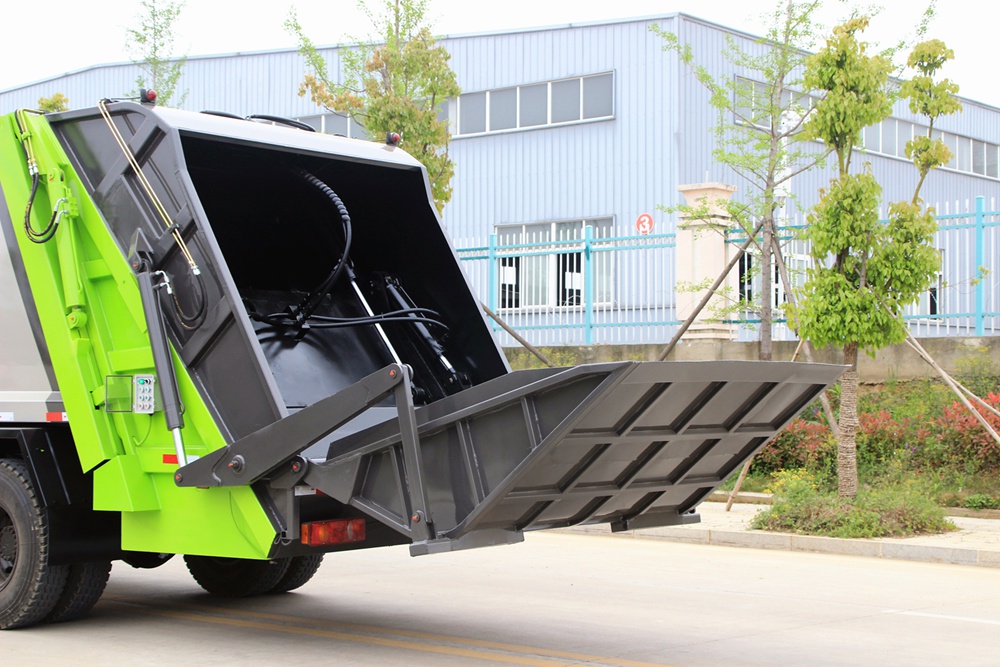 • 壓縮式垃圾車采用機電液一體化技術,借助機電液聯合自動控制系統,通過車廂、填裝器和推鏟等專用裝置,實現垃圾倒入、壓碎或壓扁、強力裝填,把垃圾擠入車廂并壓實和推卸。其主要特點是垃圾收集方式簡便、高效、具有自動反復壓縮以及蠕動壓縮功能,壓縮比高,裝載質量大,作業自動化,動力性、環保性好,整車利用效率高。