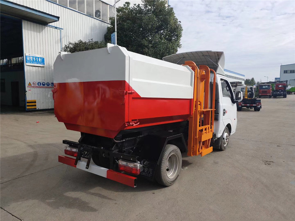 國六東風途逸掛桶垃圾車,箱體容積3~4立方,火車頭式駕駛室,內飾配置高端,可選用2600/2800軸距,2.5噸后橋,柳州五菱112馬力汽油發動機,5檔變速箱,175R14LT真空輪胎(后雙胎),方向助力,原裝空調,中控,遙控鑰匙。
